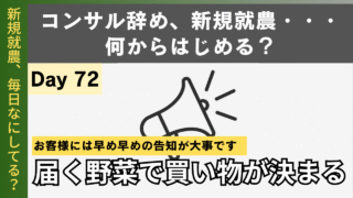 新規就農Day69。お客様には早め早めの告知が大事です。野菜を起点に料理を考えるお客様もいる。