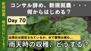 新規就農Day70。出荷日は固定されているが、水で葉物は痛む...雨天時の収穫、どうする?