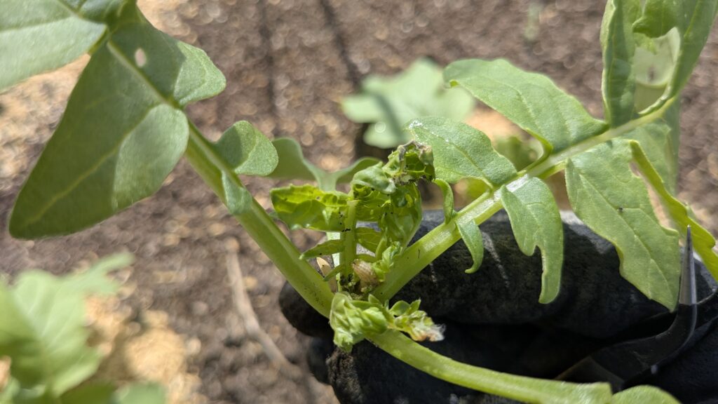 おわかりいただけるだろうか…成長点をむしゃむしゃ食べているイモムシが…