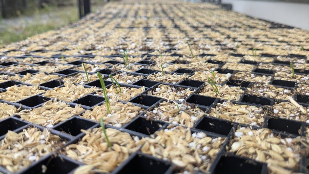 • 覆土は「種まき培土:籾殻くん炭=8:2」を混合して使用