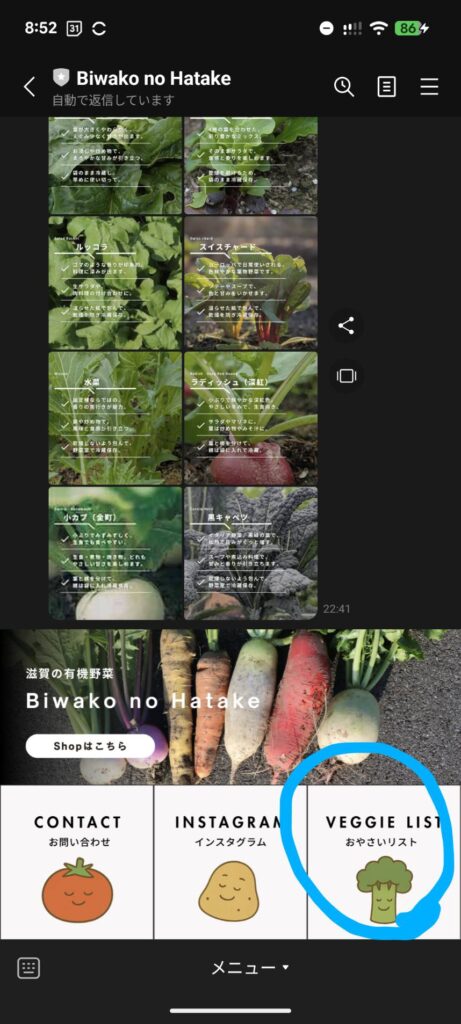 リッチメニューと組み合わせて、いつでも最新の「おやさいリスト」へ