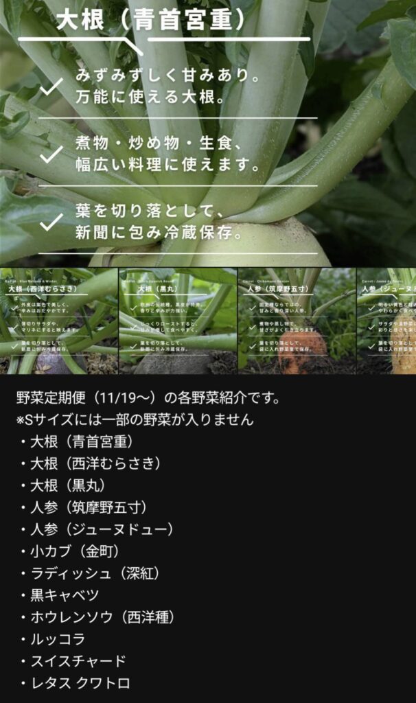 - その時点での最新の野菜セット内容が