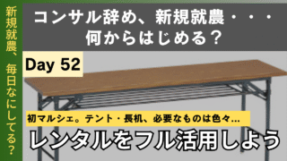 新規就農Day52。初マルシェ。テント・長机、必要なものは色々...。レンタルをフル活用しよう。